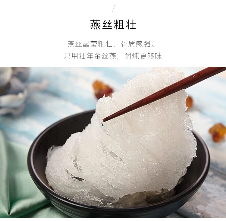 燕窝bird nests含促进细胞分裂的激素和表皮生长因子,能促进细胞再生,增强免疫能力,燕窝独特的蛋白质成分和大量生物活性分子有助人体组织生长发育,病后复原,可以养阴,润燥、养颜、延缓衰老,并且清虚热,治虚损,对咯血吐血、久咳痰喘,阴虚发热等导致津液脱失的病症有良好效果。 它含有丰富的蛋白质,每百克含量可高达50克,还含有多种氨基酸、糖类、无机盐和维生素等。